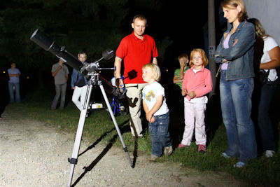 Već i prije 21 sat, kad je bio planirani početak druženja, skupila se velika grupa znatiželjnih građana. Obzirom da se u to vrijeme Mjesec tek sramežljivo počeo pojavljivati iznad horizonta, tajnik društva Miroslav Smolić, pripremio je za nazočne predavanje o Mjesecu.